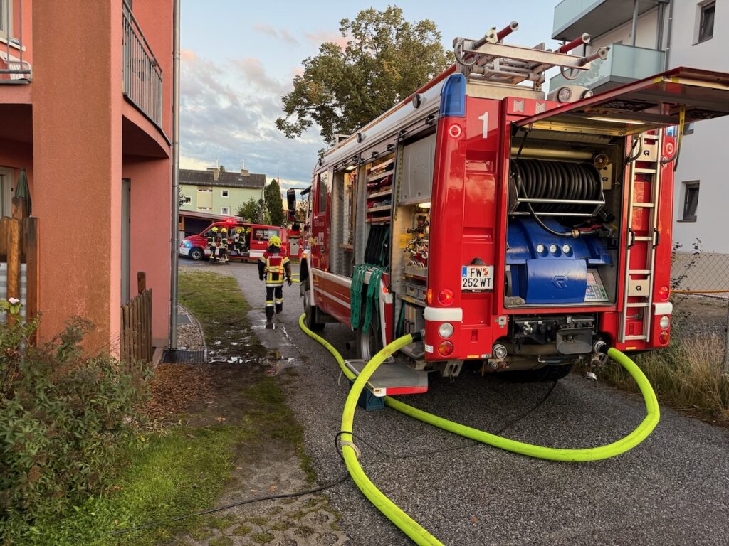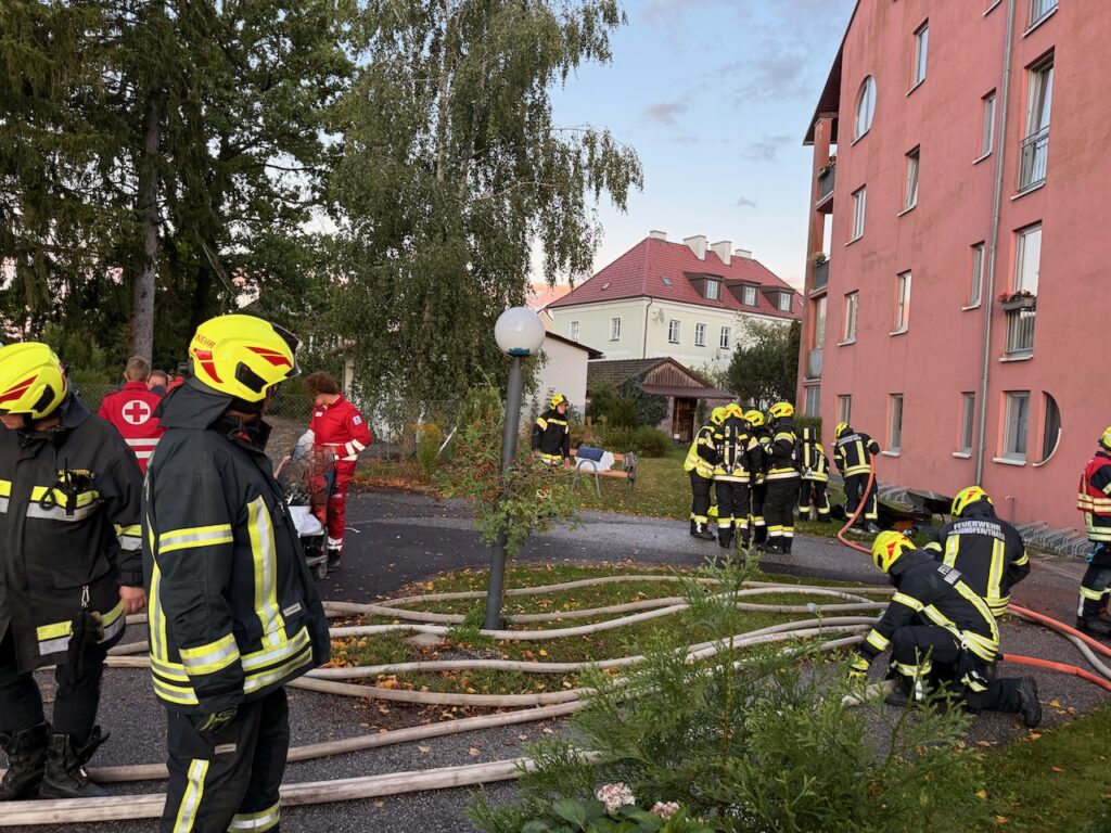 Heute um 18:30 wurden wir zu einem Kellerbrand in einem Seniorenwohnheim in Waidhofen/Thaya alarmiert. Da sich einige Feuerwehrmitglieder gerade im Zuge einer Übung im Feuerwehrhaus befanden, konnten wir umgehend mit einem Atemschutztrupp und 10 Mann zur Einsatzstelle ausrücken. Während unser Atemschutztrupp im Keller gemeinsam mit Atemschutztrupps der anderen Feuerwehren mit Löscharbeiten beschäftigt war, wurden die Bewohner mit Fluchtmasken aus dem verrauchten Gebäude evakuiert und dem Rettungsdienst übergeben. Nach Beendigung der Löscharbeiten, wurde der Brandraum von darin befindlichen Gegenständen befreit und diese nach draußen zum Ablöschen gebracht. Um 21:00h konnten wir unsere Einsatzbereitschaft wieder herstellen.